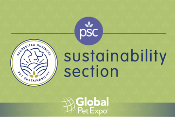 The Pet Sustainability Coalition (PSC), the pet industry’s leading sustainability partner, is thrilled to be hosting the industry’s first-ever Sustainability Section at a major U.S. trade show, Global Pet Expo, presented by the American Pet Products Association (APPA) and Pet Industry Distributors Association (PIDA). Created in partnership with APPA, the section will feature 8 Accredited members along a single aisle, easily identifiable on the floor map and by a hanging aisle sign. The section begins at the PSC Booth #541.